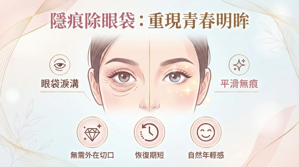 | 核心原理 | 透過眼瞼內側的小切口,移除或重新分配多餘的眼脂肪(眼袋),達到平滑眼周的效果。 |